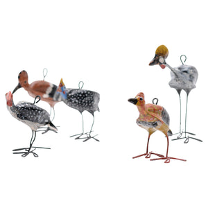 Five South African bird Ornaments. Hoopoe, guinea fowl, red-billed hornbills, crested barbet and the African crowned crane.
