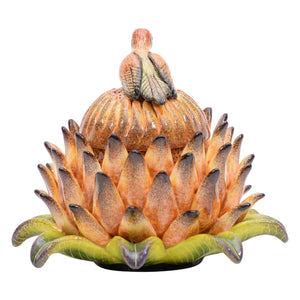 The sunbird jewelry box was made in South Africa in 2025. This ceramic artwork was sculpted by Sbusiso Ndaba and painted by Sabelo Nene, measuring 4.75 inches high, 5.5 inches long and 5.5 inches wide.