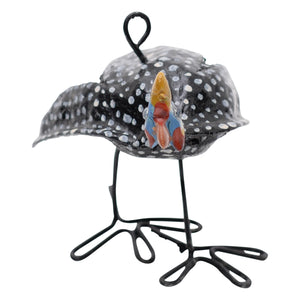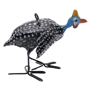 Guinea fowls are endemic to Africa and rank among the oldest of the gallinaceous birds. They eat insects and seeds. They nest on the ground.