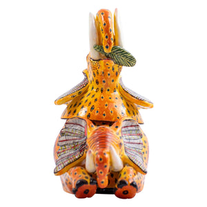 The elephant jewelry box was made in South Africa in 2025. This ceramic artwork was sculpted by Lucky and painted by Ntokozo Shabalala, measuring 6 inches high, 8.75 inches long and 3.25 inches wide.