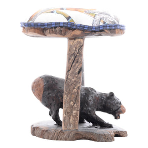 The leopard batonga stool was commissioned by Pascoe Gallery. Carved by hand in Zimbawe by skilled artisans from a single piece of iron wood, without breaking the log. It measures H.14 .in L.12 in. W.6 in.