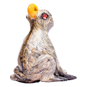 The monkey ornament was made in South Africa in 2024. This ceramic artwork was sculpted by Mbeke and painted by Masibiya, measuring 3 inches high, 2 inches long and 2 inches wide.