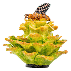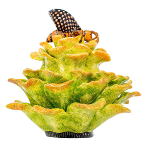 The butterfly & protea jewelry box was made in South Africa in 2025. This ceramic artwork was sculpted by Sbusiso Ndaba and painted by Jabu Nene, measuring 4 inches in height, 5 inches in length, 5 inches in width.