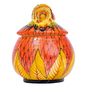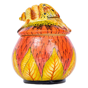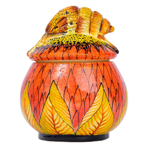 The snail jewelry box was made in South Africa in 2025. This ceramic artwork was sculpted by Nathi Msomi and painted by Minenhle Nene, measuring 6 inches in height, 4 inches in length, 4 inches in width.