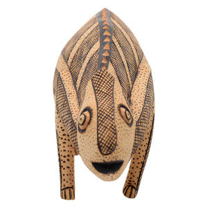This whimsical folk art chameleon sculpture is a South African rural sculpture. Inspired by folk stories, legends, and their own life experience. Made out of indigenous woods. Usually created purpouse rather than for utility.