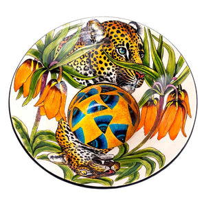 The leopard and pattern, bowl was designed by in South Africa in 2024. This ceramic artwork was sculpted by George Manyathela & Phomotso Mafuraand painted by Junoth Ncube, measuring 7 inches high, 13 inches long and 13 inches wide.