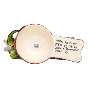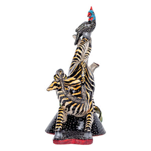 The zebra & guineafowl sculpture was designed by Zimele Ceramics in South Africa in 2024. This ceramic artwork was sculpted by Victor and painted by Mbali, measuring 10 inches high, 10 inches long and 5 inches wide.